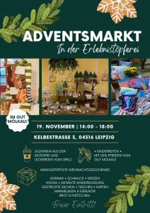 Heute nehmen wir wieder am Adventsmarkt in der Erlebnistöpferei Gut Mölkau teil. Wir haben viele weihnachtliche Köstlichkeiten wie Stollen und Plätzchen vorbereitet.