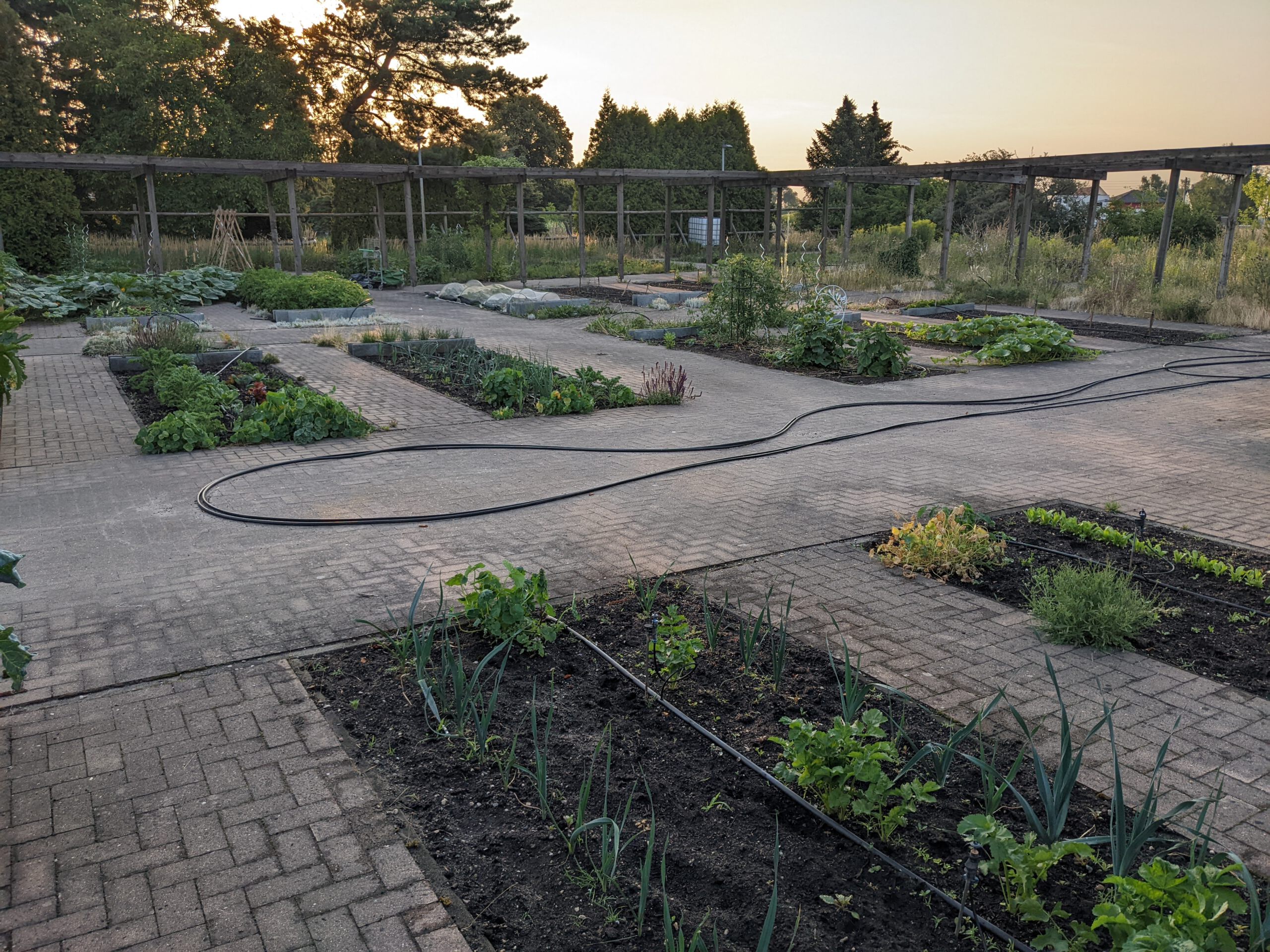 Unser Konzept hat sich in die bestehende Infrastruktur und Bepflanzung integriert, sodass das bisherige Ökosystem erhalten bleiben konnte. Wir haben 30 Beerensträucher gepflanzt und eine Streuobstwiese mit 12 Obstbäumen angelegt. Weiterhin sind ca. 450 qm Gemüseanbaufläche und ein Folientunnel entstanden.